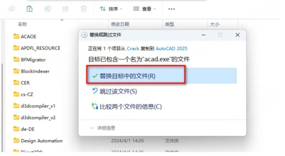 11、直接把文件拖进AutoCAD 2025的安装目录(就是第6步你选的那个路径啦),然后会弹出提示,果断选"替换"就完事儿啦~