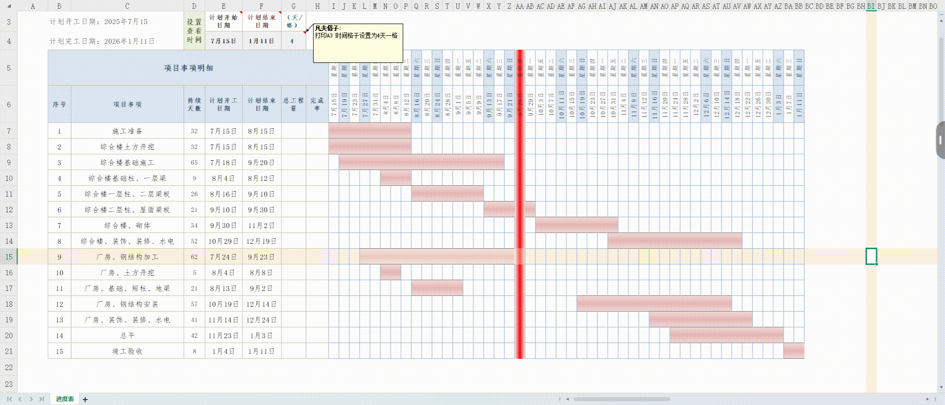 全自动生成进度计划横道图